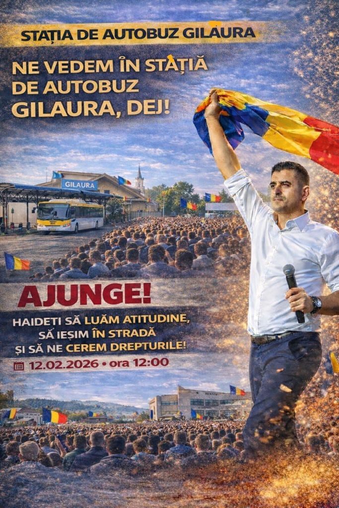 Un protest AUR împotriva măsurilor fiscale recente și a deciziilor autorităților a fost programat să aibă loc la Dej, azi, 12 februarie, de la ora 12, în zona stației de autobuz Gilaura.