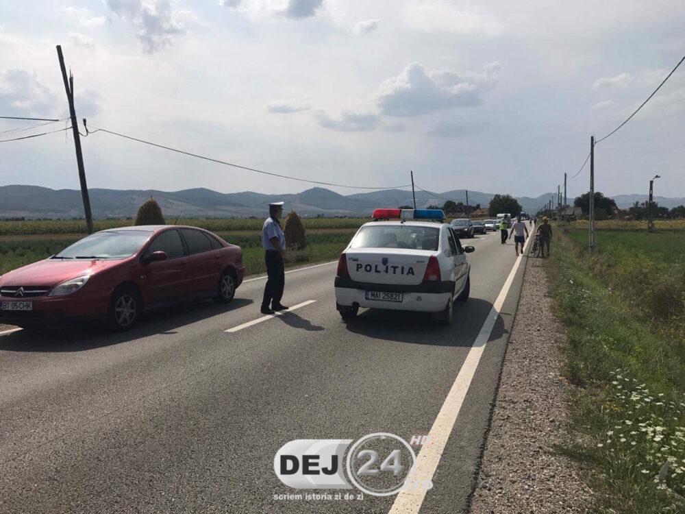 Din primele informații, un bărbat care se deplasa pe o bicicletă a fost lovit în plin de un autoturism care se deplasa pe Drumul Național 1C. În urma apelului la 112, la fața locului s-au deplasat polițiștii, dar și o ambulanță de la Dej.