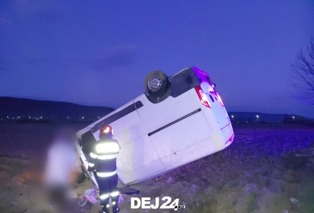 ACCIDENT între Coplean și Câțcău, o autoutilitară s-a răsturnat în afara șoselei – FOTO
