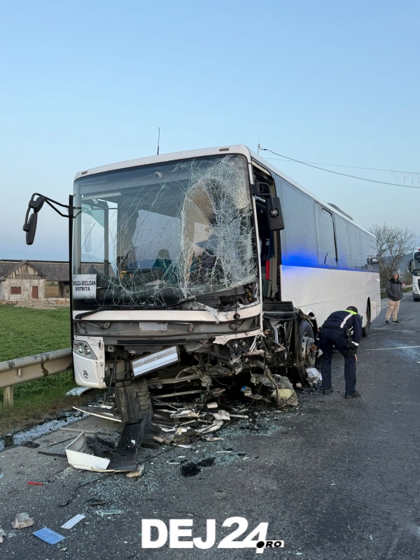 ”Conducătorul autobuzului a fost extras din autobuz, predat echipajelor medicale, prezenta fractură deschisă membru inferior. Un alt bărbat, pasager, în vârsta de cca 71 de ani a fost preluat de echipajele medicale, prezenta un traumatism cranian. Ambele sunt transportate la spital pentru investigații medicale suplimentare”, a precizat ISU Bistrița-Năsăud.