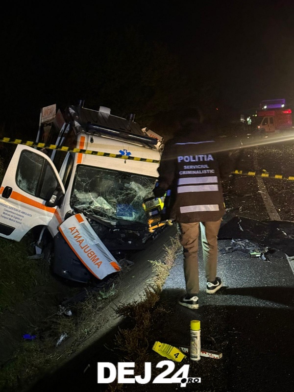 Ambulanță implicată într-un accident mortal, în Cluj. Pacienta transportată și-a pierdut viața – FOTO