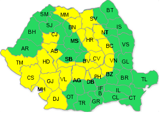 Această avertizare vizează precipitaţii importante cantitativ, intensificări ale vântului şi ninsori.