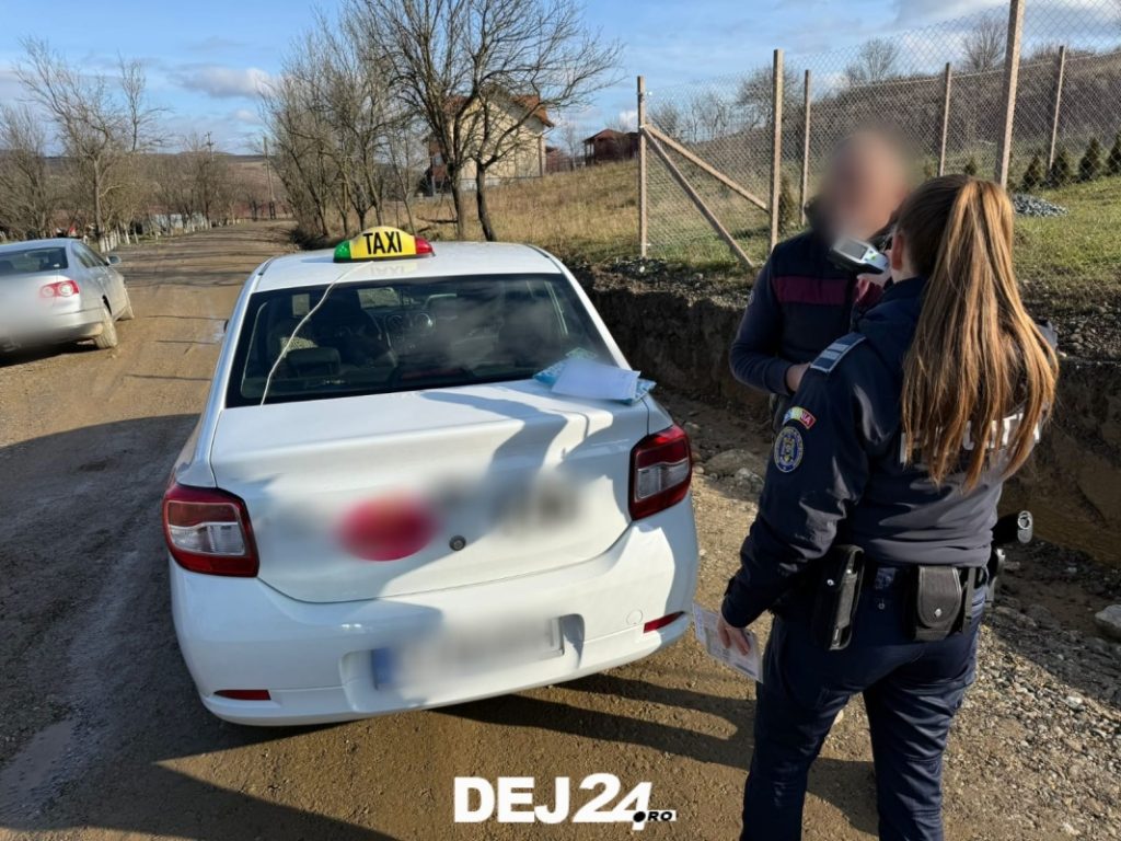Ieri, polițiștii din cadrul Secției 5 Poliție Rurală Dej au identificat un bărbat de 51 de ani, din comuna Mica, în timp ce efectua activități de transport în regim de taxi, având lampa taxi în funcțiune, dar fără a avea aparatul de taxat pornit, deși transporta un pasager și nu putea elibera bonul fiscal.