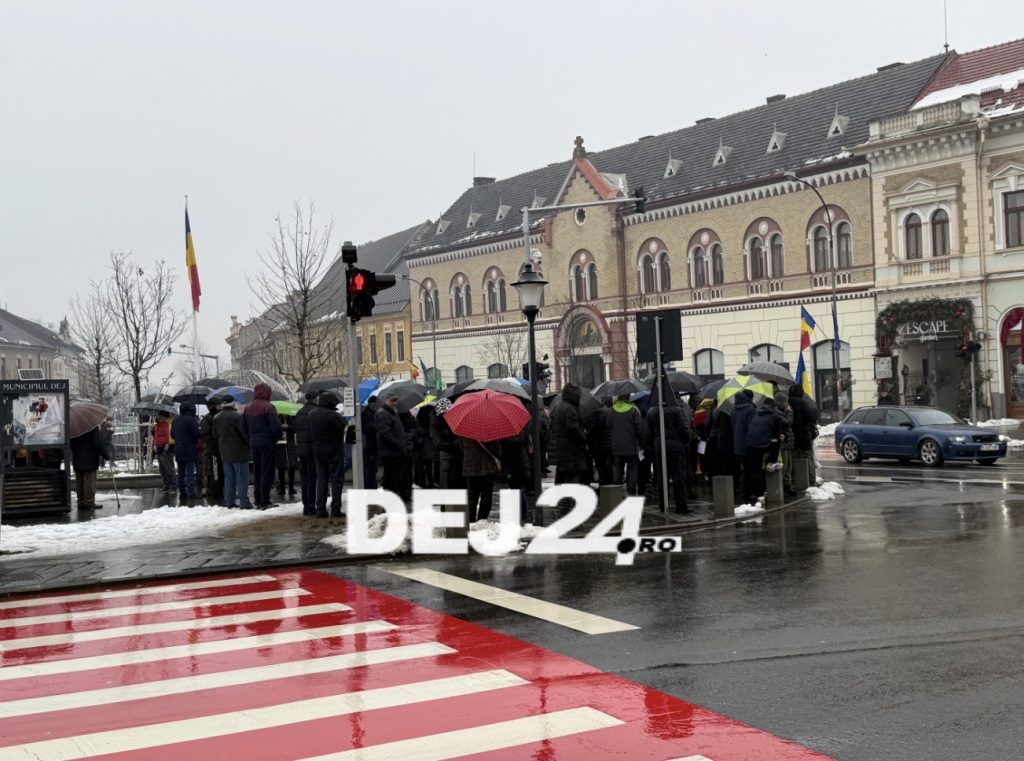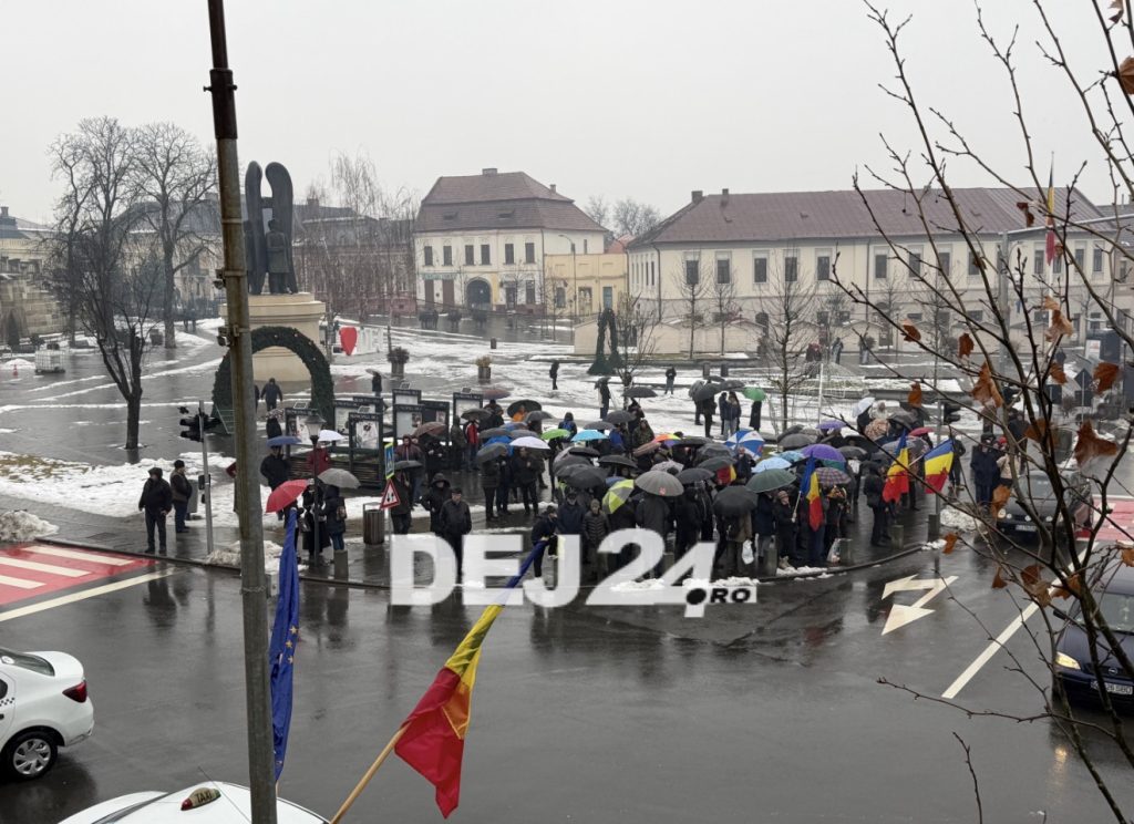 Sub 100 de persoane au protestat astăzi, pe ploaie, în Piața Bobâlna din Dej, nemulțumite de creșterea dărilor locale, considerate prea mari în raport cu veniturile și costul vieții.