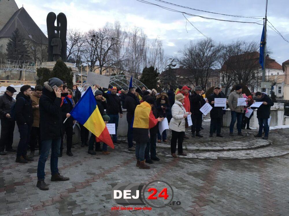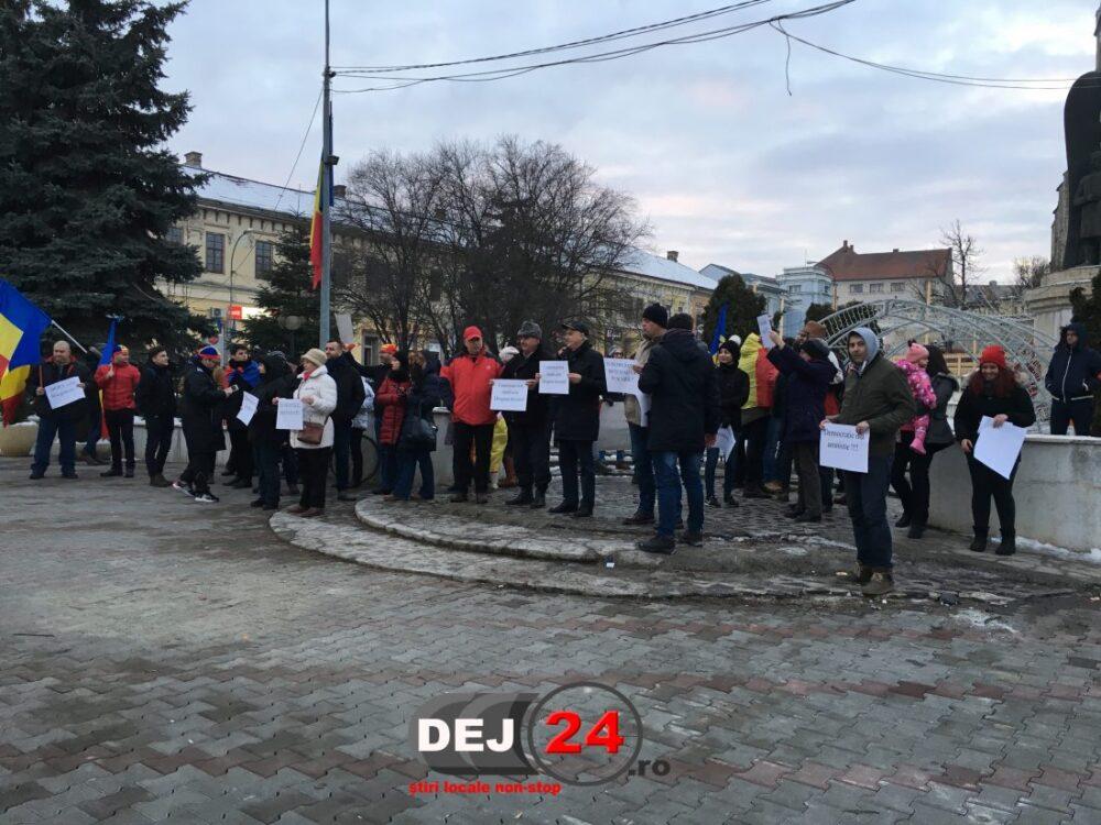 Zeci de oameni se află acum în centrul municipiului Dej și protestează, după ce Guvernul a adoptat proiectul de lege privind graţierea şi ordonanţa privind modificarea Codurilor Penale.